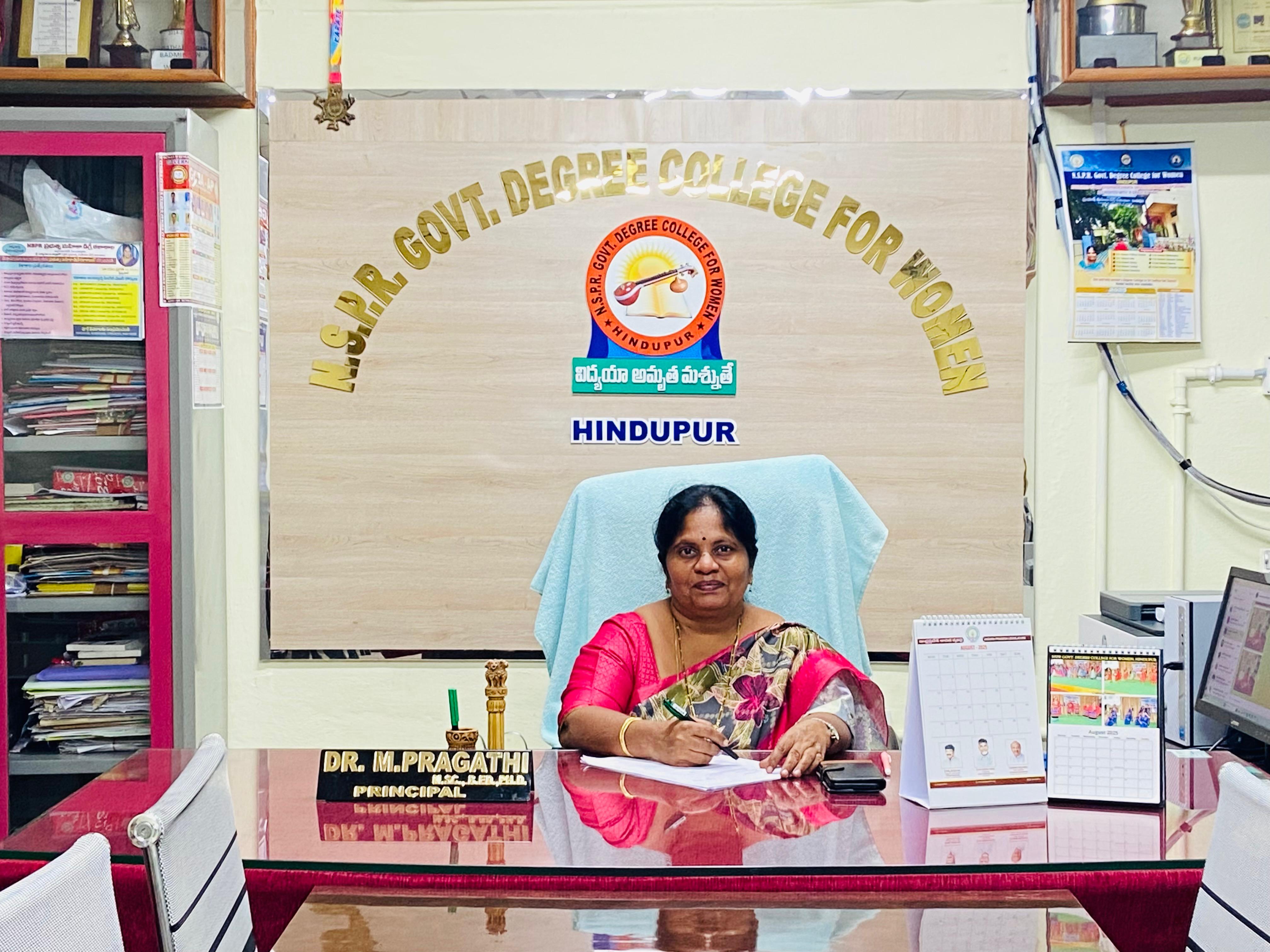 It gives me an immense pleasure in welcoming you to N.S.P.R. Govt. Degree College for Women, Hindupur, a renowned institution for women’s education, employability and empowerment. It has both conventional and restructured undergraduate courses. Adorned with knowledge, qualified teachers the college progressed and is now in the present shape with concrete credits and appreciation from the stakeholders. Since the establishment of our college, with its long cherished history & achievements it marches towards excellence.